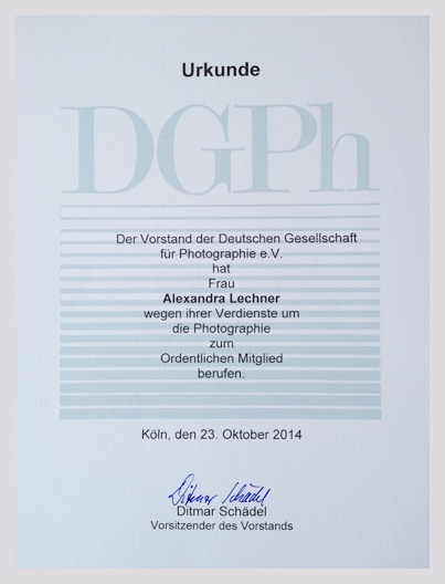 Herzlichen Dank an die Deutsche Gesellschaft für Photographie (DGPh), die mich als Mitglied berufen hat.