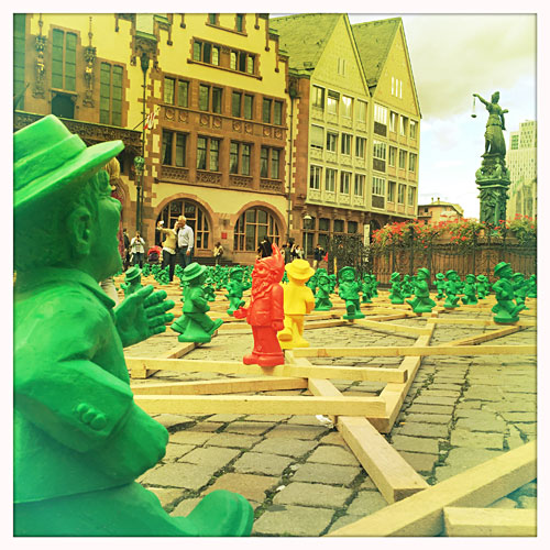 150915_al_blogSämtliche Ampelmännchen haben ihre Ampeln verlassen und tanzen auf dem Römer in Frankfurt. Nur einer ist hier irgendwie falsch….