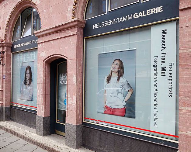 Vom 18. Juli. bis 2. September 2016 sind 2 Bilder aus meiner Fotoserie MENSCH, FRAU, MUT in den Fenstern der Heussenstamm-Galerie in Frankfurt zu sehen.